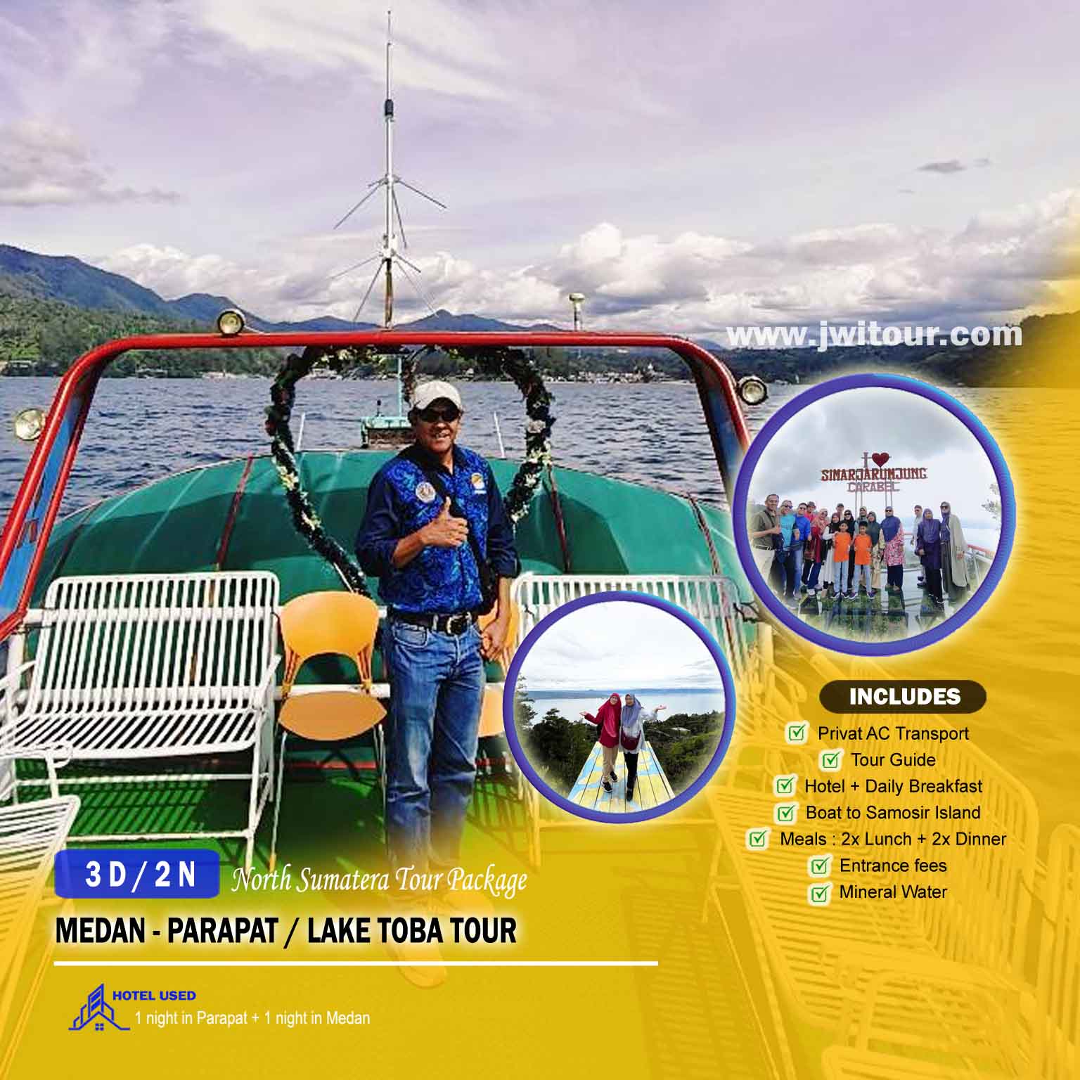 - Meals as Per Itinerary (Indonesian Food) : 2× Lunch + 2× Dinner at local restaurant