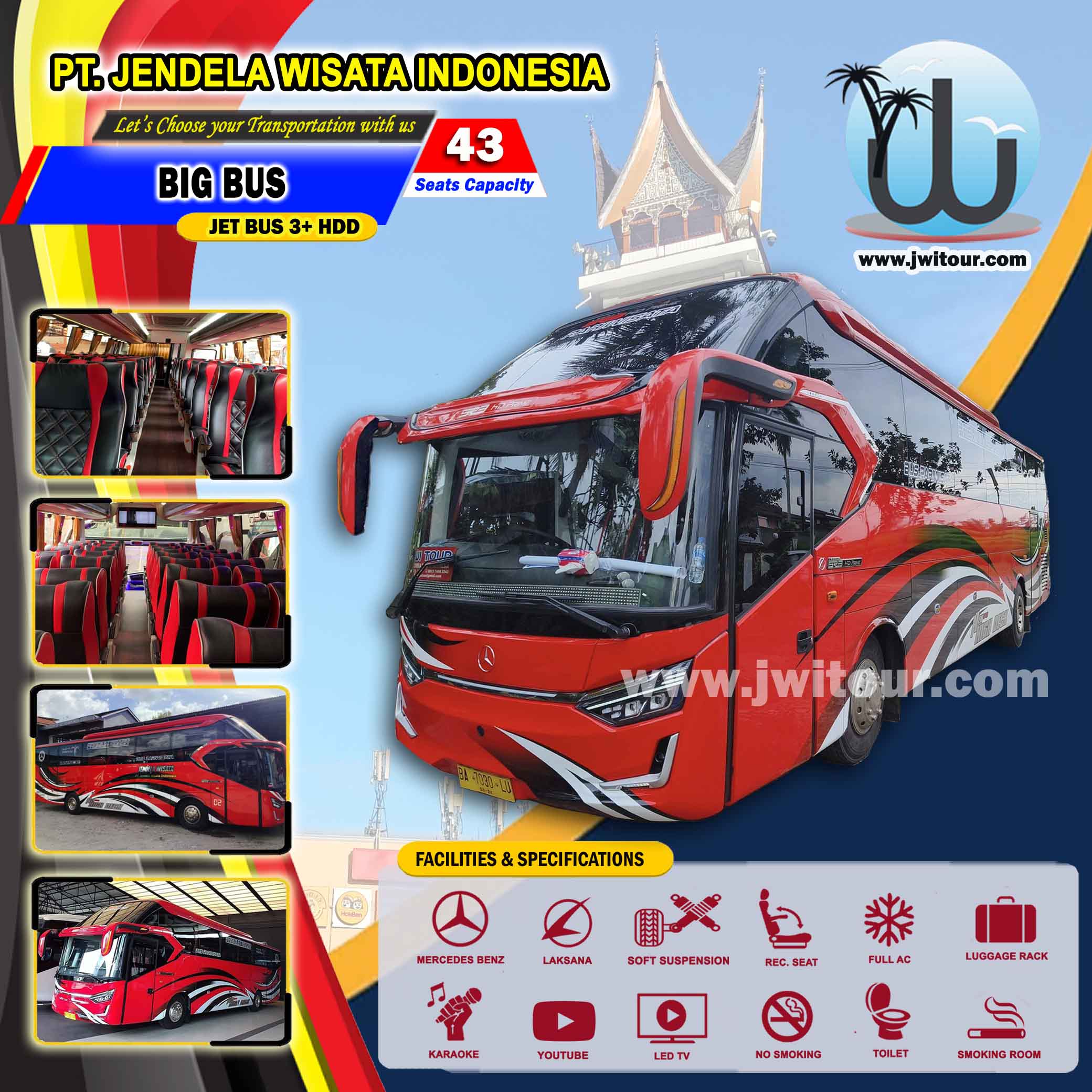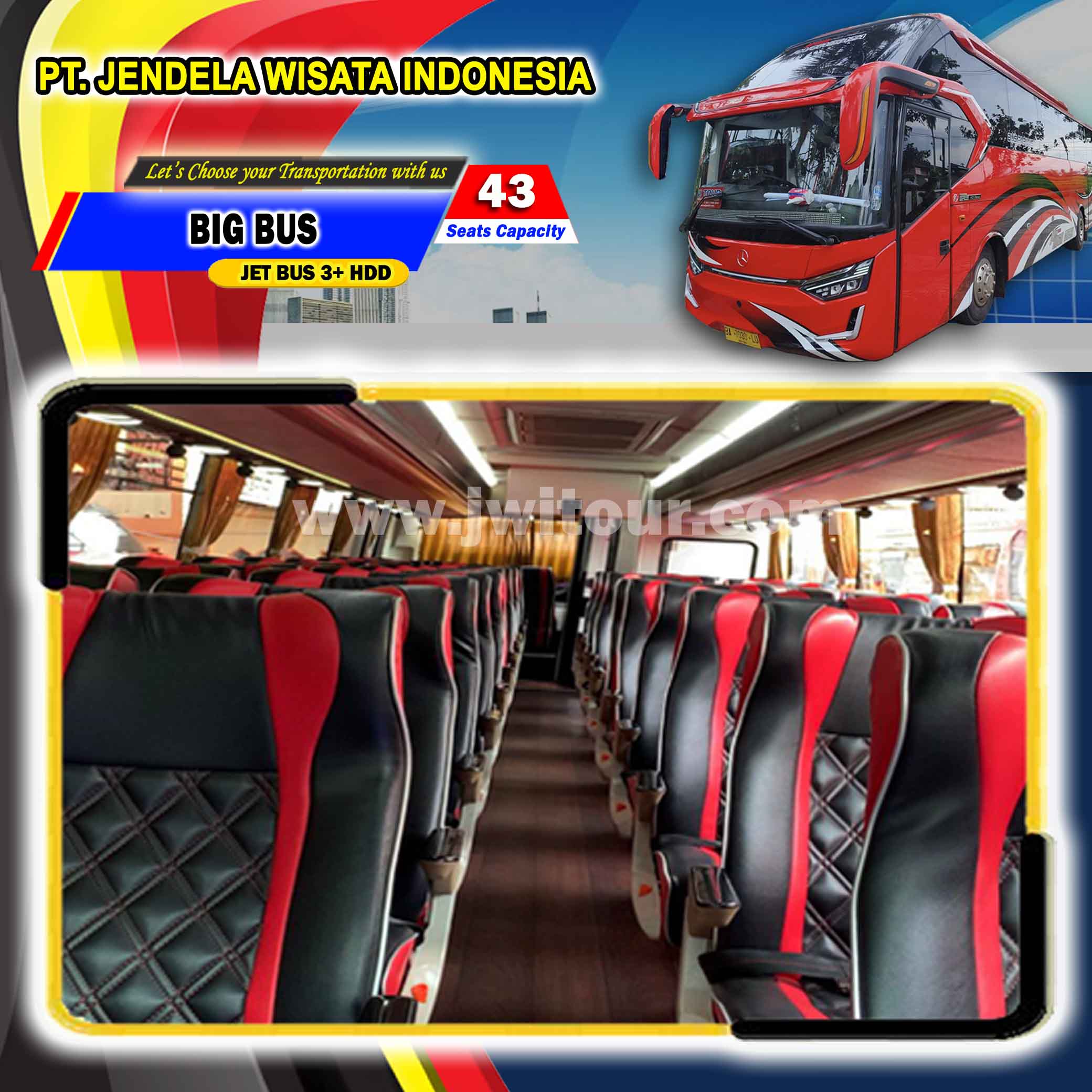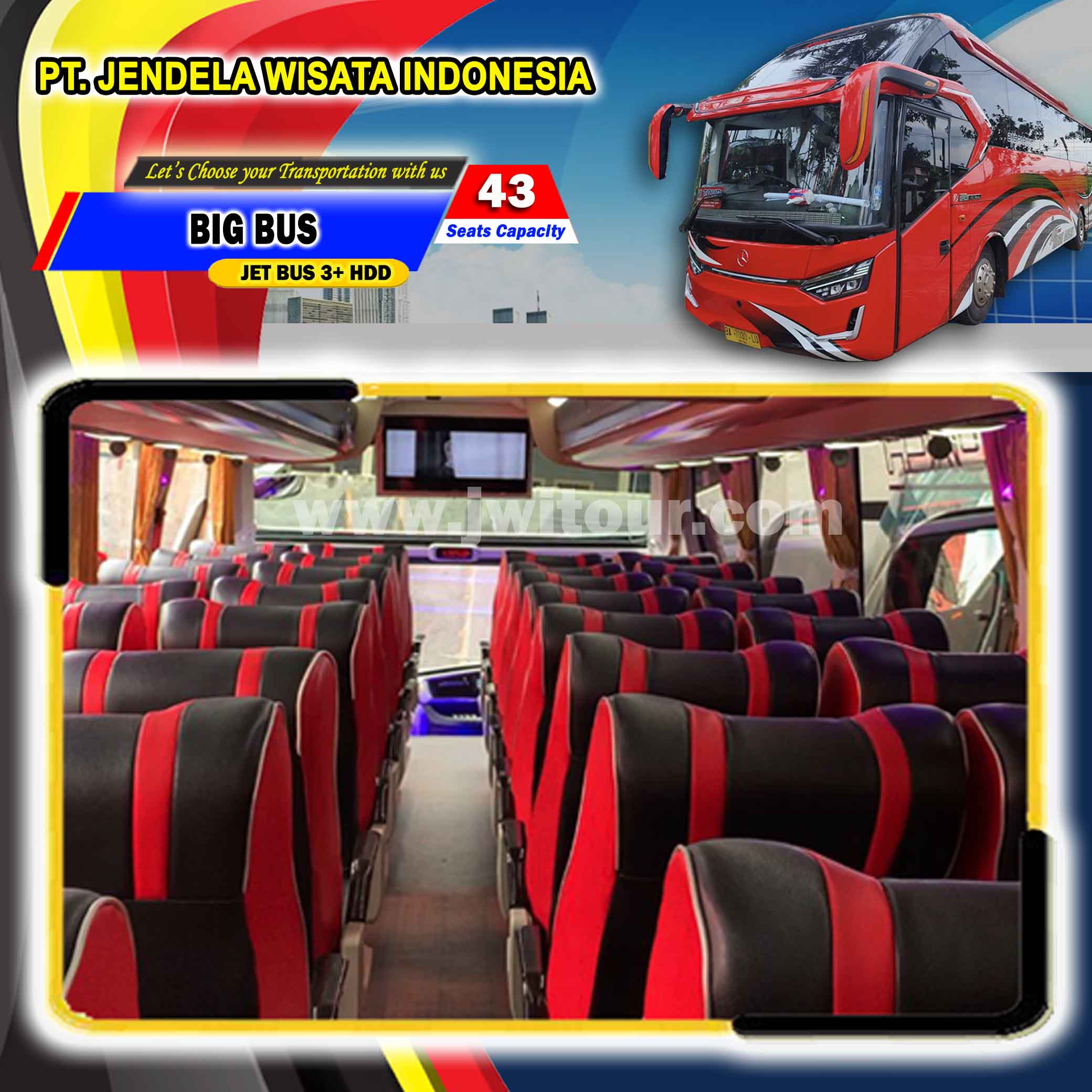 Big Bus ini memiliki kapasitas tempat duduk sebanyak 43 seats, dengan formasi tempat duduk 2 (dua) seat di sisi kiri, 2 (dua) seat di sisi kanan ( 2-2 ) serta 6 (enam) seat di barisan paling belakang